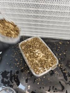 Con una cuchara desinfectada,(también puedes echarla directamente del bote) distribuye uniformemente el contenido del bote sobre la superficie del sustrato, creando una fina capa homogénea que facilitará la formación de primordios,no es necesario que eches todo el casing,puedes guardar el resto para el siguiente flush.