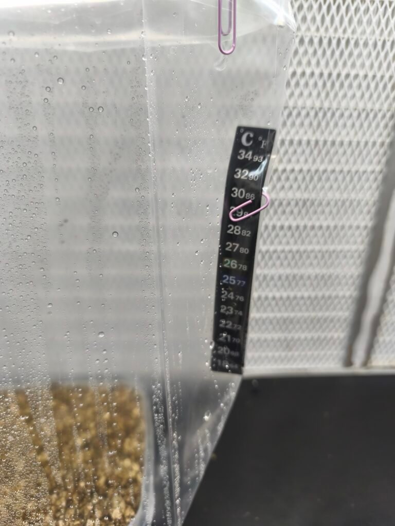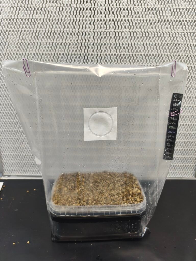 Realiza un intercambio de aire cada dos días de 2-3 minutos, abriendo completamente la bolsa. Este proceso elimina el CO₂ acumulado y aporta oxígeno esencial para el desarrollo,aunque yo prefiero no ventilar por que cada vez que abres les cambias el clima y ellas lo notan.Si observas que la ventilación está secando el sustrato, reduce la frecuencia a una vez cada tres días.yo personalmente prefiero ventilar lo menos posible o nada.