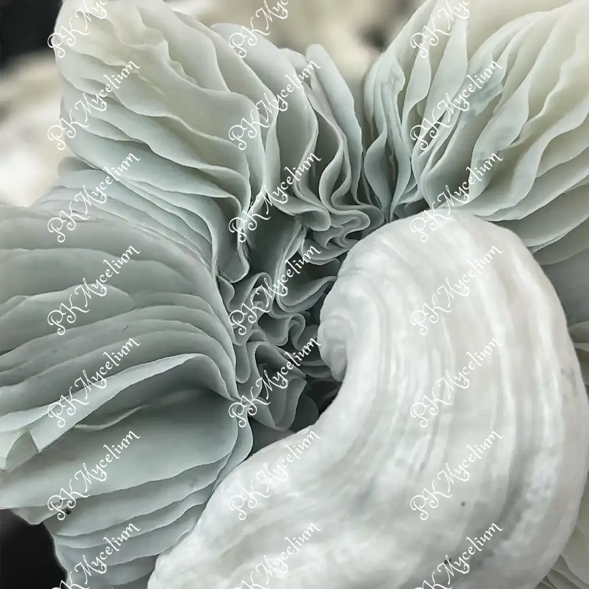 Blanco puro a blanco marfil, a menudo con bordes que se curvan hacia arriba al madurar; puede presentar un azulado intenso por manipulación.