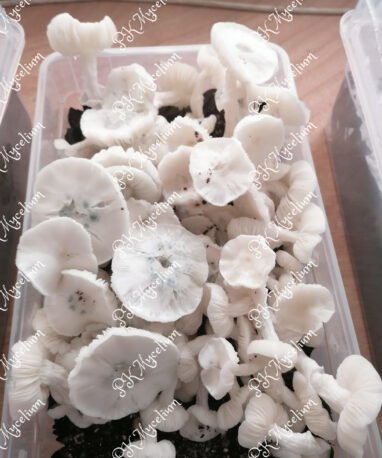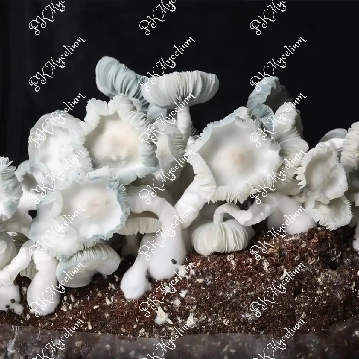 | Morfología | Albino, caps blancas rizadas, branquias azules | Albino, caps densas PE | Albino, caps planas GT | Albino, grueso y denso | Tallos blancos, caps doradas | Sombrero dorado clásico |