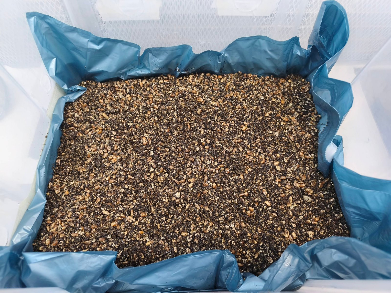 Si vas a calentar con una manta calefactora por fuera de la caja o en una habitación con temperatura controlada, haz el bulk en la caja de 25/35 litros recomiendo la caja de 25 litros, ya que tendremos menos riesgo de contaminaciones al haber menos aire dentro de la caja y su desinfección es mas sencilla.
